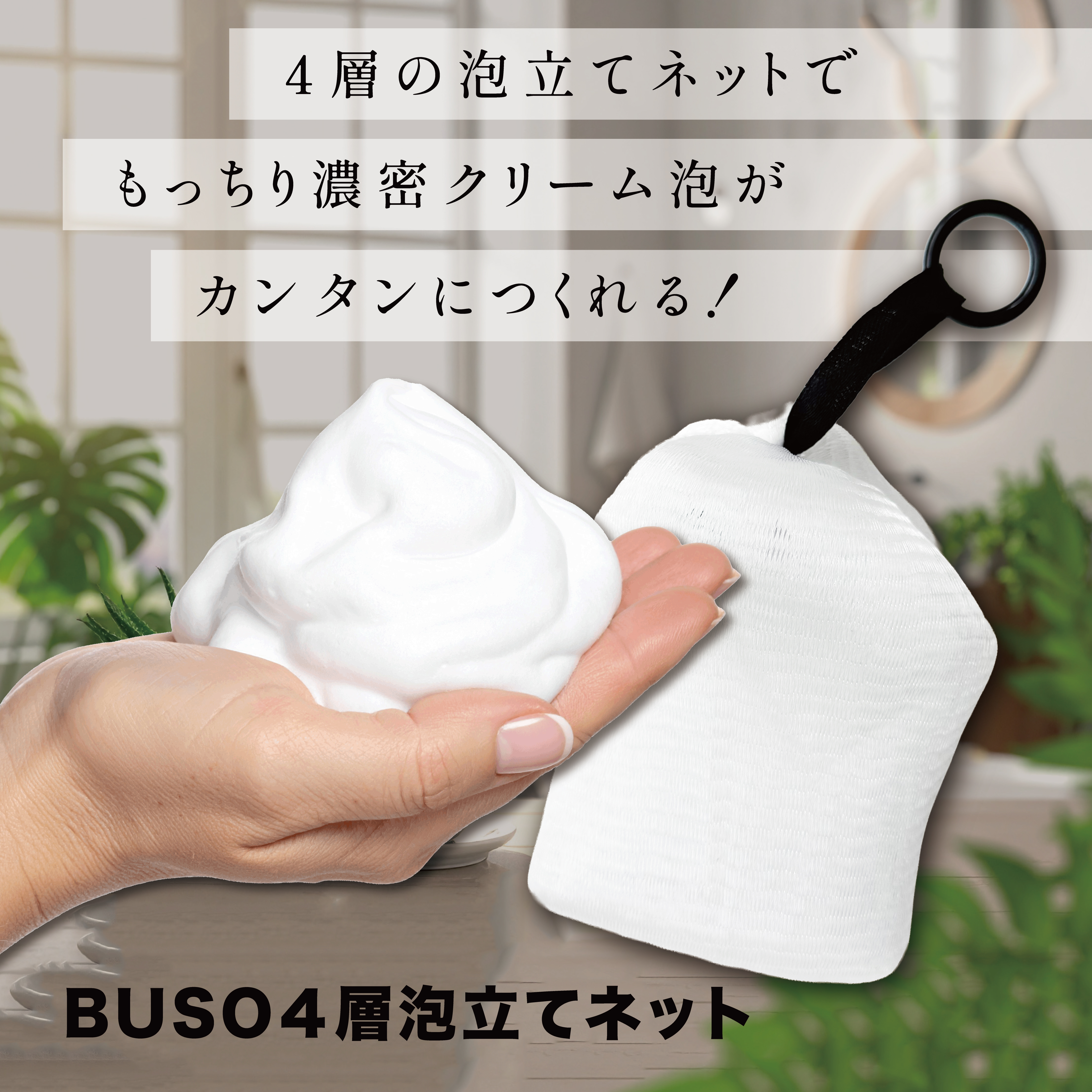 BUSO洗顔石けんは、「無添加」枠練り石けんのキメの細かい弾力性のある泡が、毛穴の奥に入り込んでいる汚れに吸着し余分な皮脂や汚れを洗浄します。