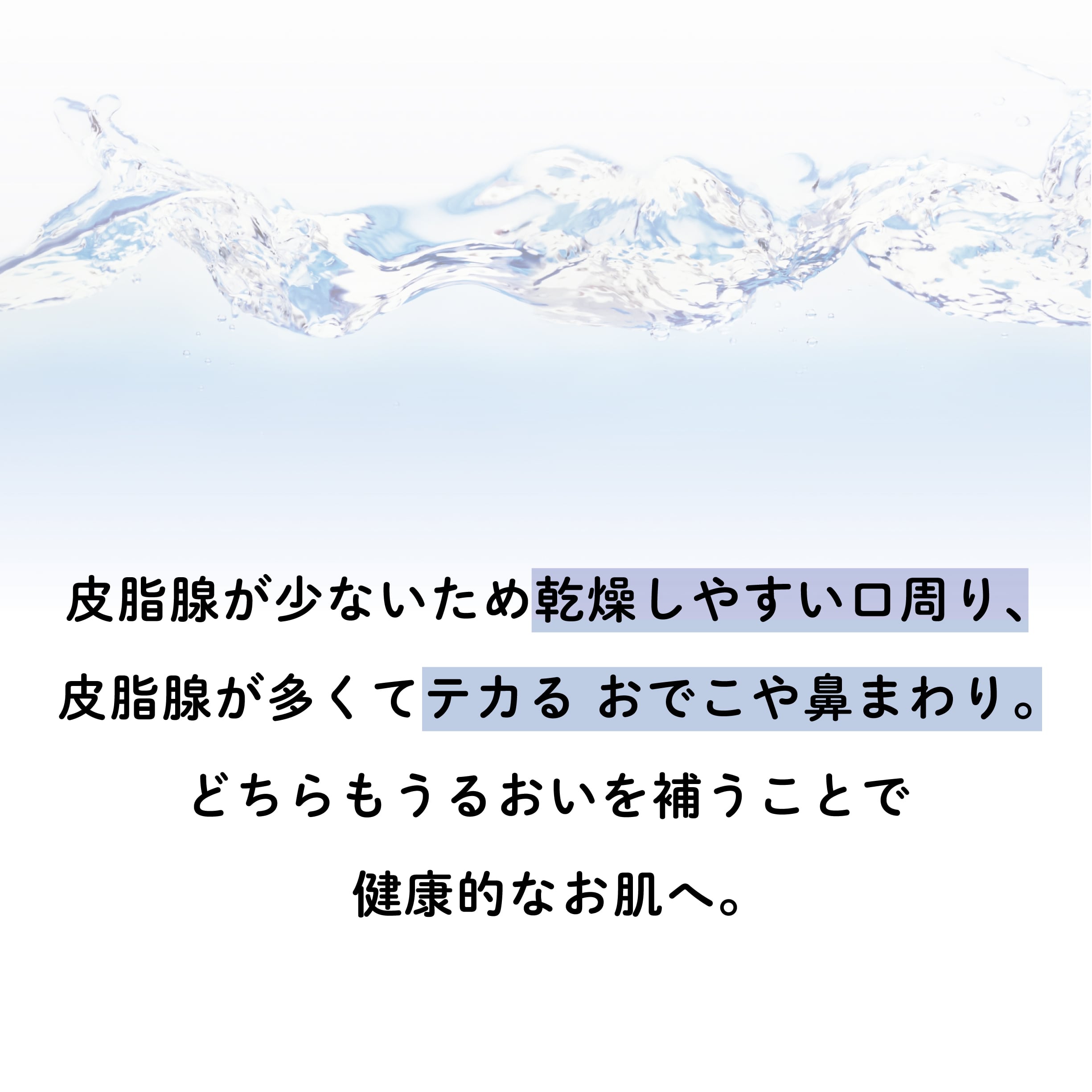 肌に潤いを補うことで、テカりや乾燥などの肌トラブルは改善に向かいます。